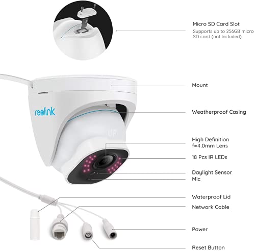 Specification: Bundle 2 Reolink Smart PoE Outdoor Camera 4K 8MP Human/Car Detection Infrared Night Vision Dome Cam Smart Home RLC-820A