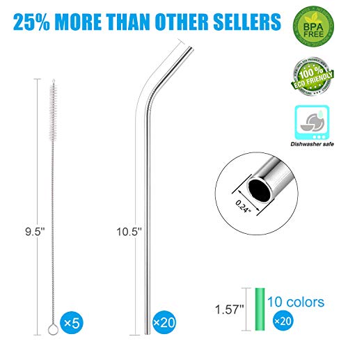 - At amazon.com you can purchase MUTNITT Set of 20 10.5" Reusable Stainless Steel Straws Bent Reusable Straws with 20 Silicone Tips 5 Cleaning Brush 1 Travel Case Eco Friendly Extra Long Metal Straws Drinking for 20 24 30 oz Tumbler for only $5.99 , which is 51% less than the cost in Banggood ($12.32).